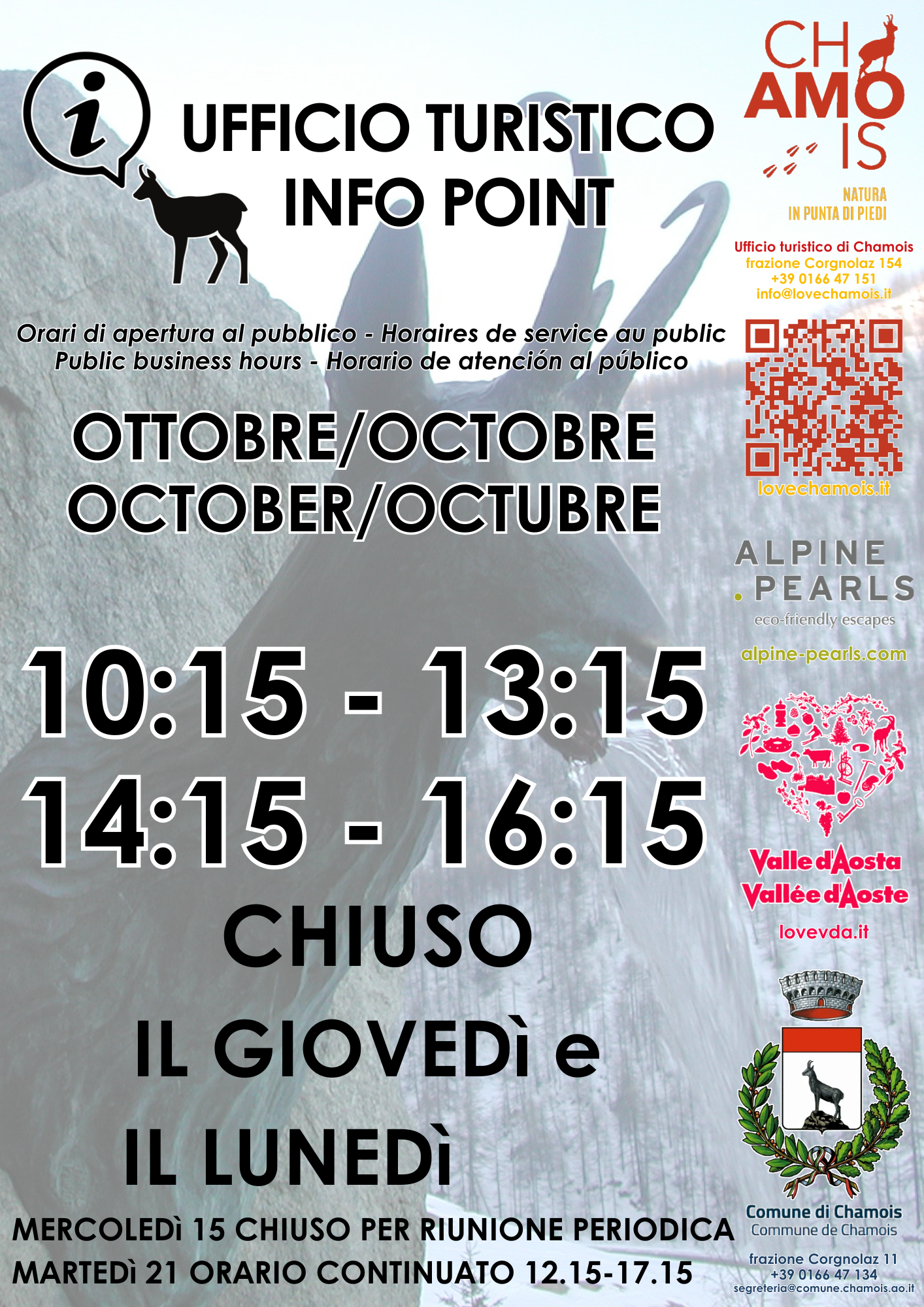 Orari ufficio turistico mese di ottobre 2025.