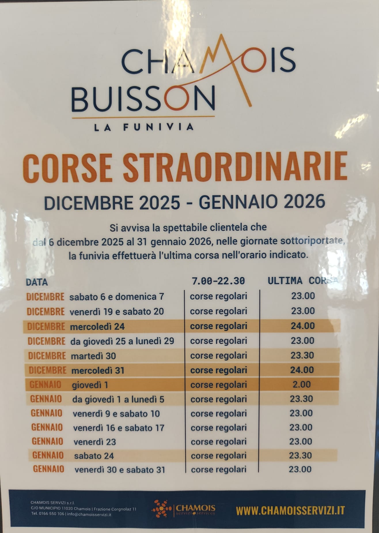 corse straordinarie funivia periodo dicembre 2025 - gennaio 2026