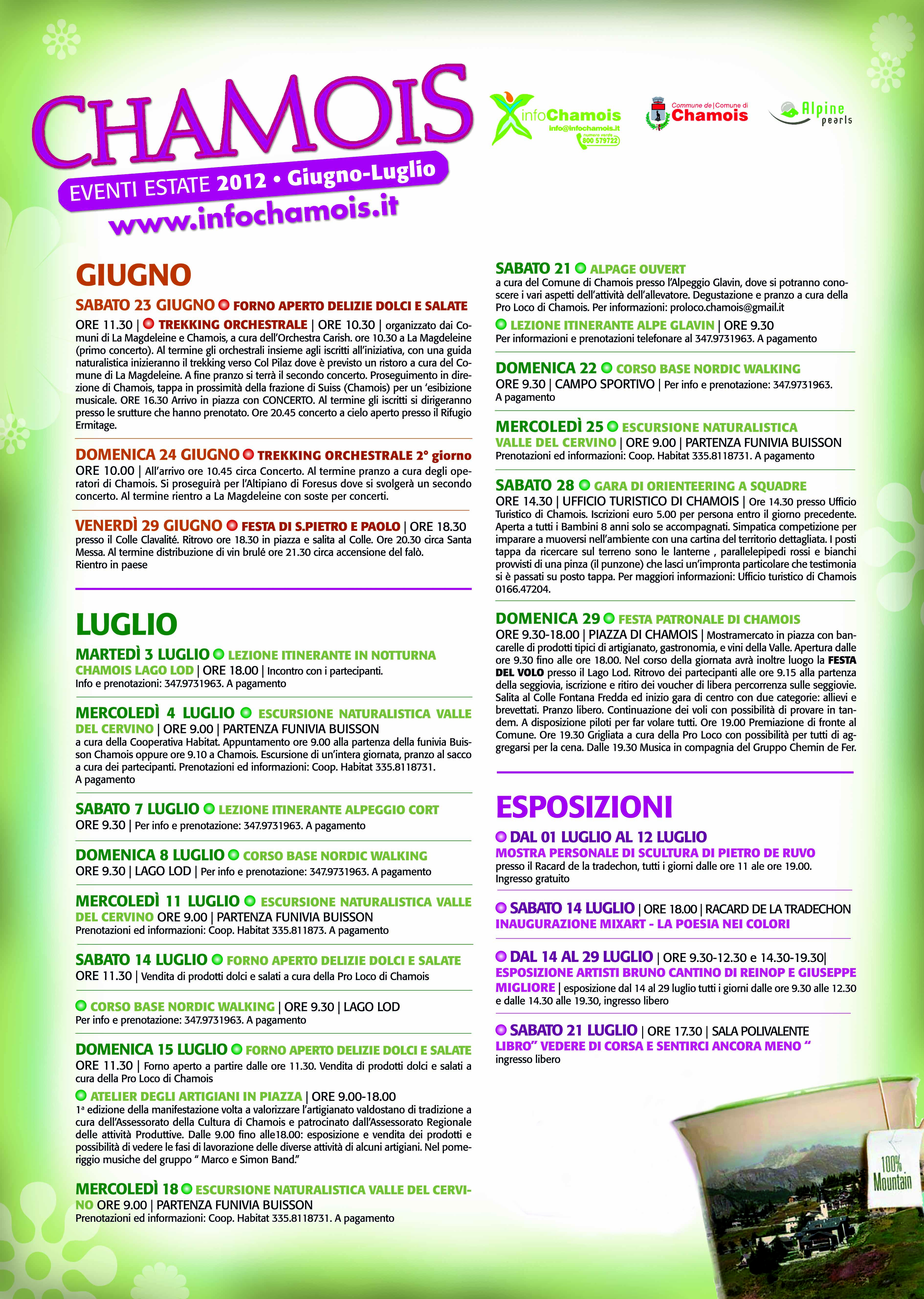 IN ALLEGATO POTETE TROVARE LE LOCANDINE DELLE MANIFESTAZIONI CHE RALLEGRERANNO LA VOSTRA ESTATE A CHAMOIS
