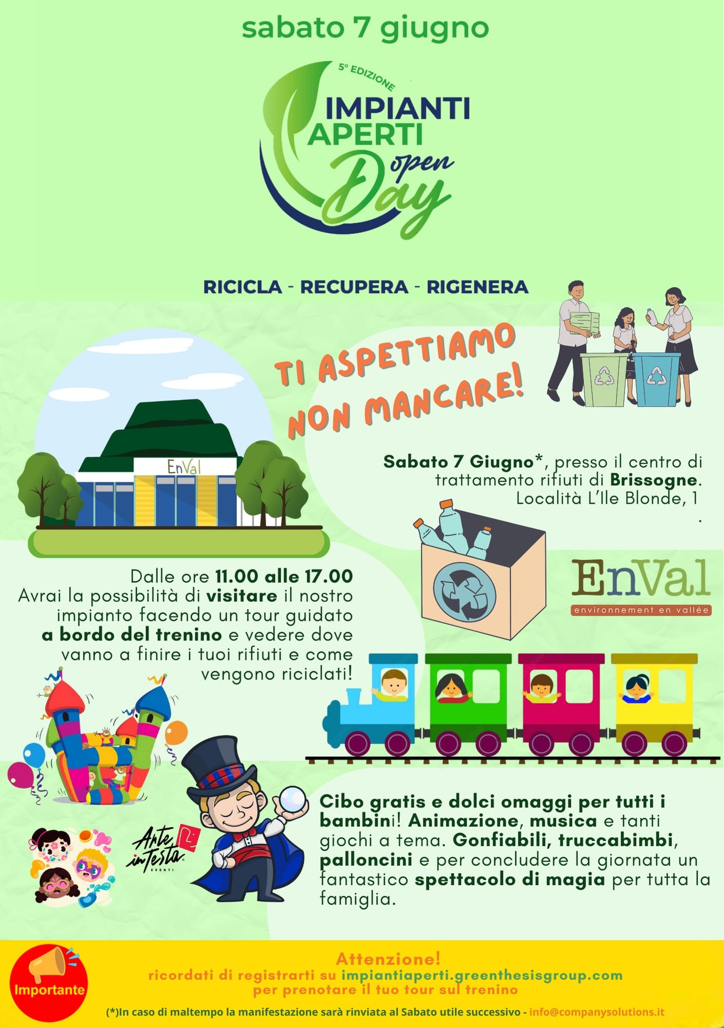 Una giornata per guardare da vicino il presente che costruisce il futuro: l’impianto di trattamento rifiuti di Brissogne, gestito da Enval srl, apre le porte ai cittadini in occasione dell’iniziativa nazionale “Impianti Aperti”, promossa da Greenthesis Group.