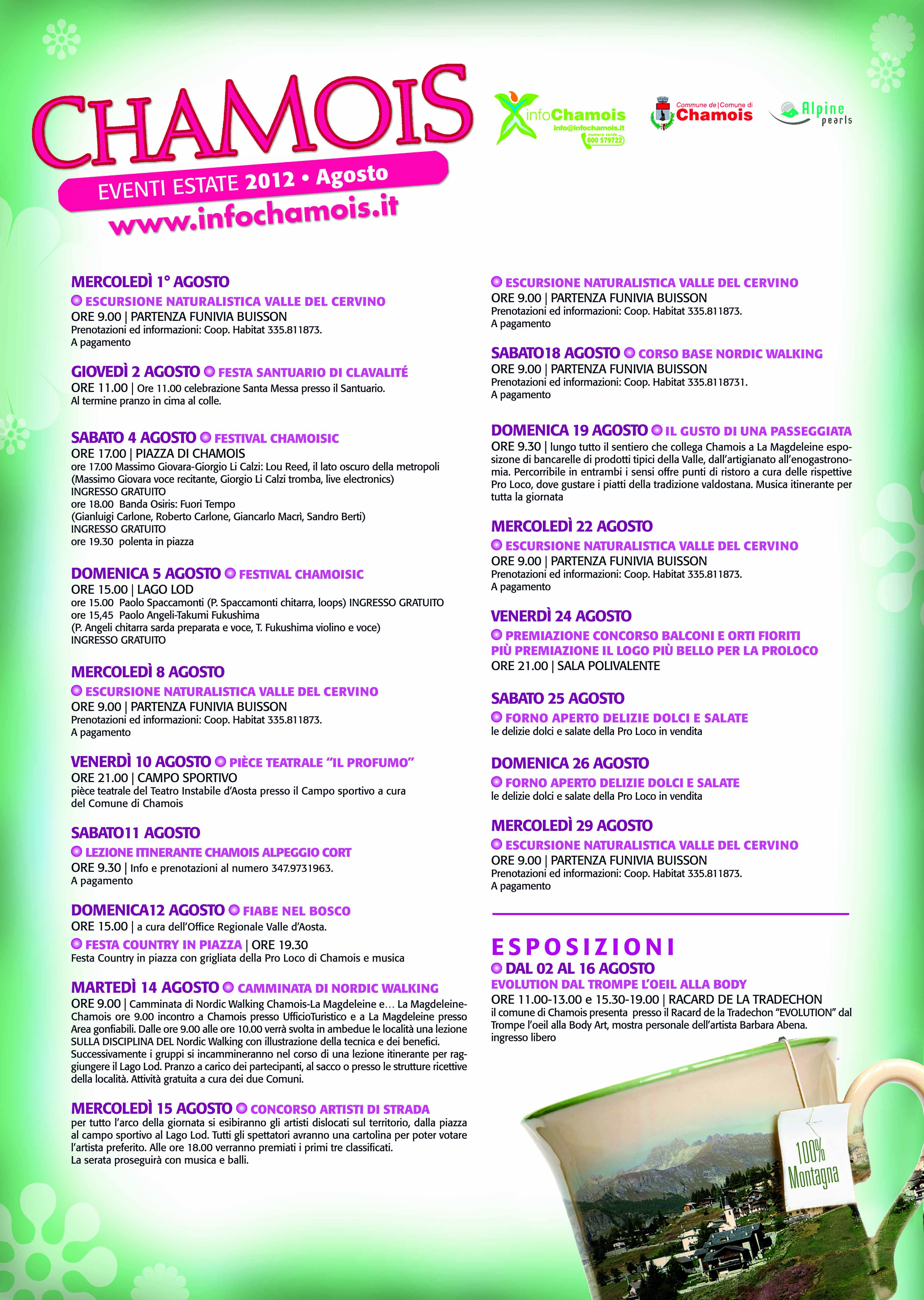 IN ALLEGATO POTETE TROVARE LE LOCANDINE DELLE MANIFESTAZIONI CHE RALLEGRERANNO LA VOSTRA ESTATE A CHAMOIS