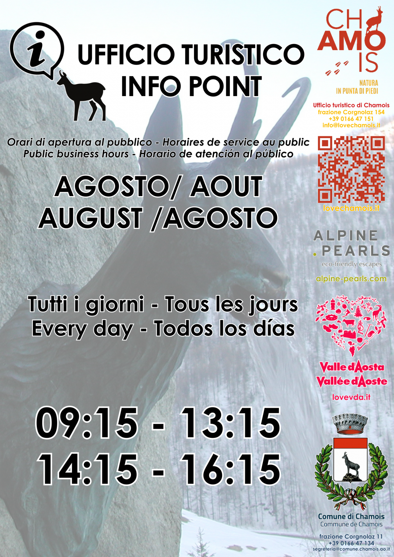 Orari ufficio turistico mese di agosto 2025.